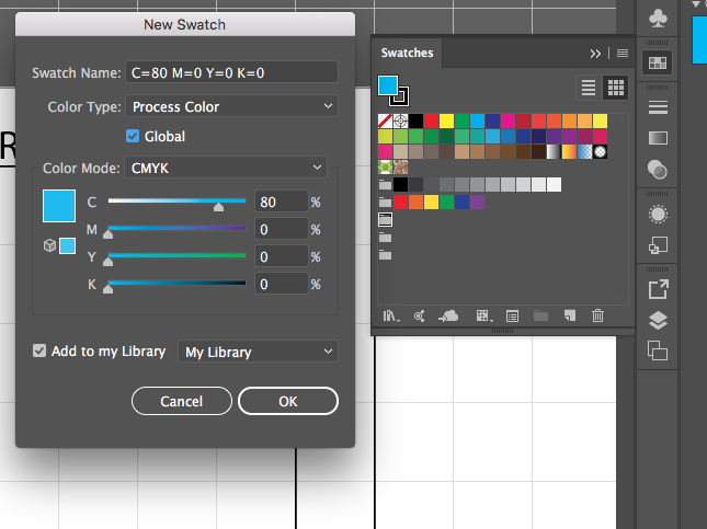 Mix your color using the sliders and be sure to check the Global checkbox (this makes it so that any shapes using this swatch will automatically update if you change the color swatch. Global swatches have a small triangle in the lower right corner).