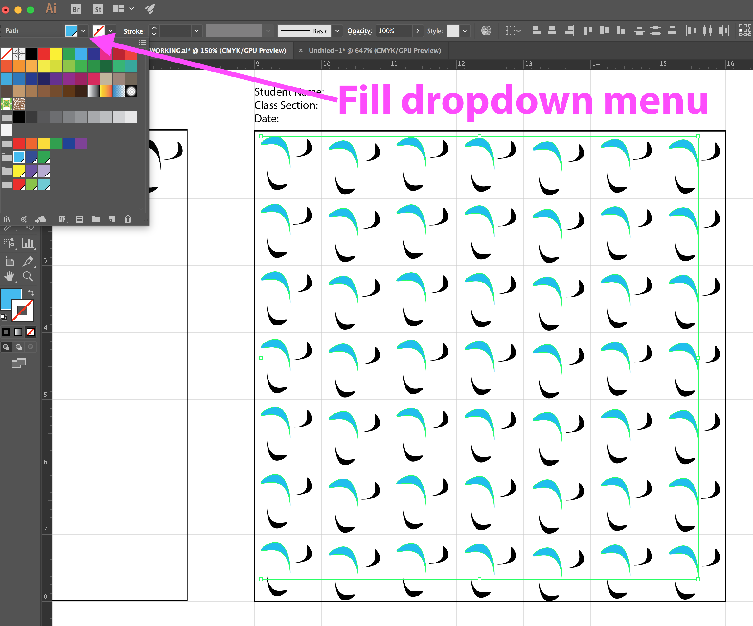 This manual will cover the Pattern and Color project for Design Studies 120. The purpose of this project is to practice the design concepts of pattern and color and to spend more working in Adobe Illustrator.