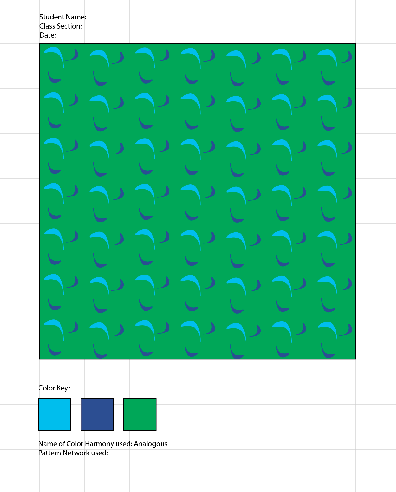 After creating your monochromatic (Black and White) pattern, we will copy this shape to the other squares in our template so that we can apply color swatches to it, using three other color harmonies.